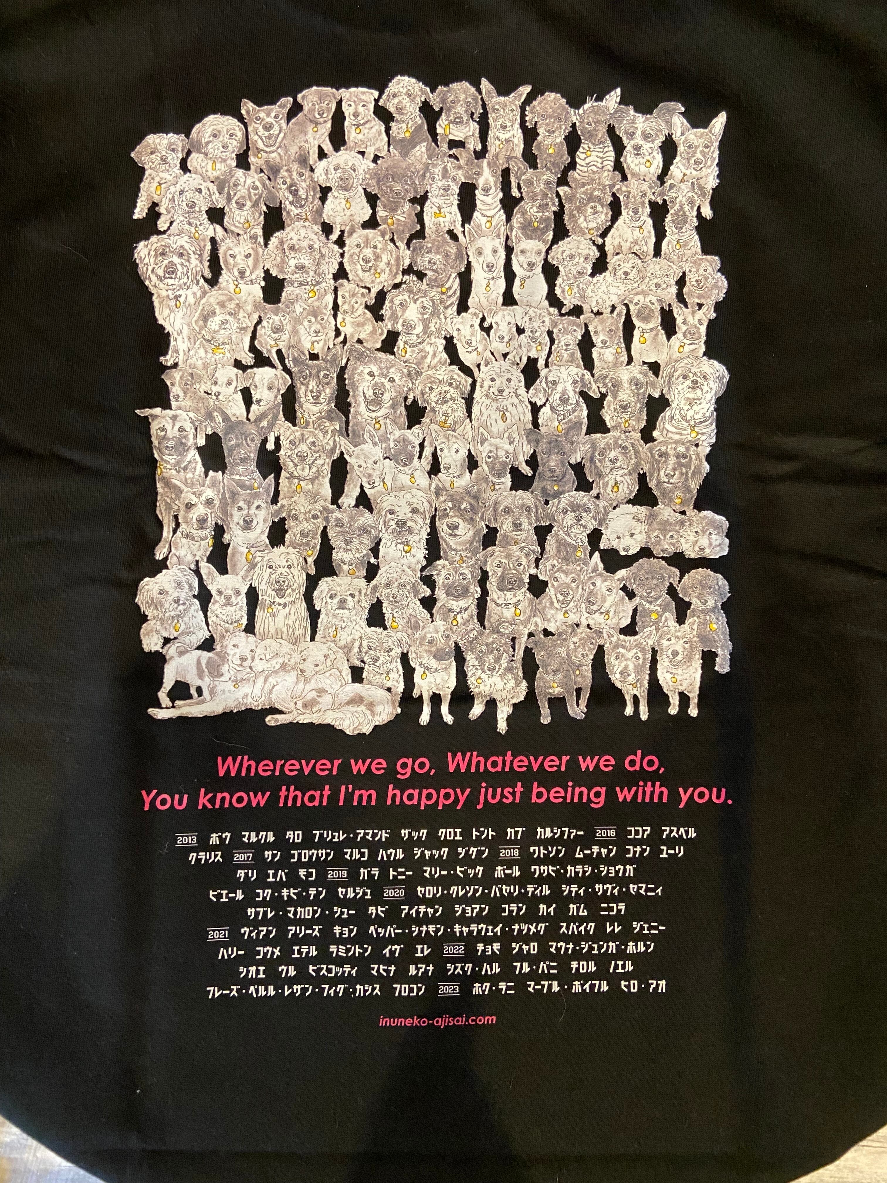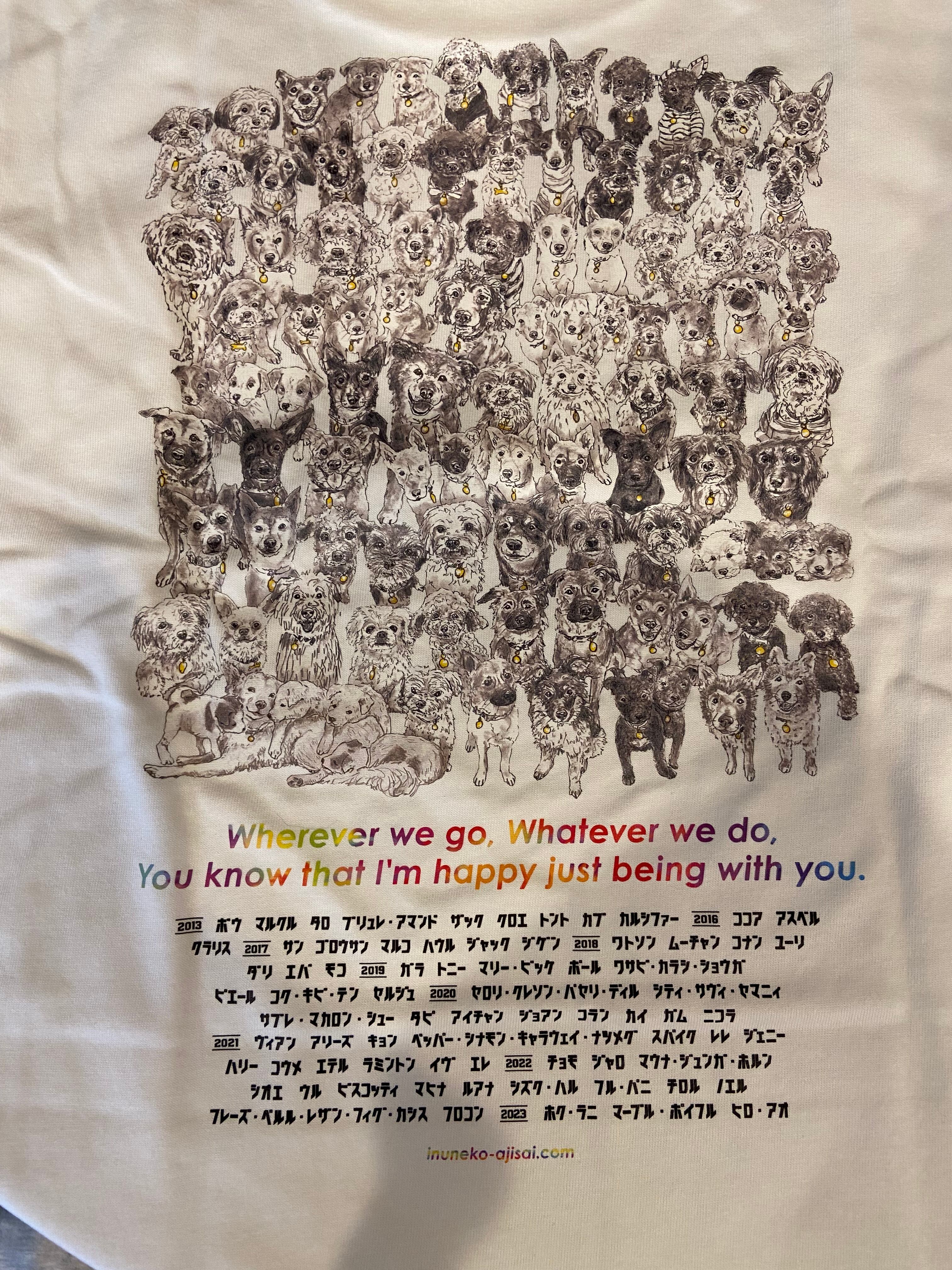 100頭の保護犬のイラストが入ったチャリティーTシャツです。