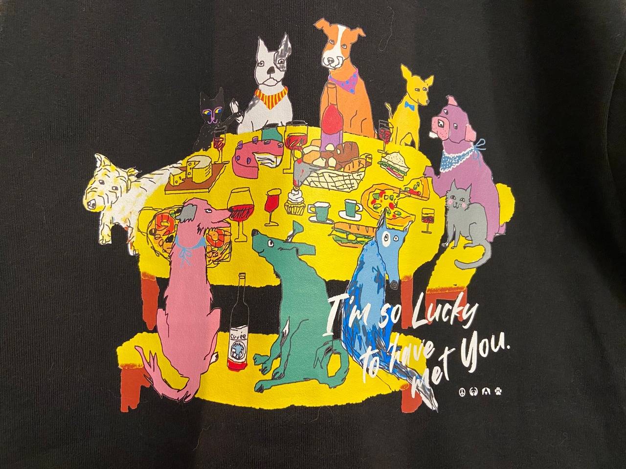 雑種犬猫たちが楽しげに宴会をするデザインのベースボールシャツです。お散歩やカジュアルなスタイルに最適な一枚で、心温まるメッセージを皆さんにお届けします。売り上げの一部は、保護犬猫のために使わせていただきます。